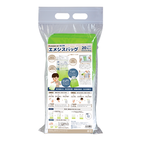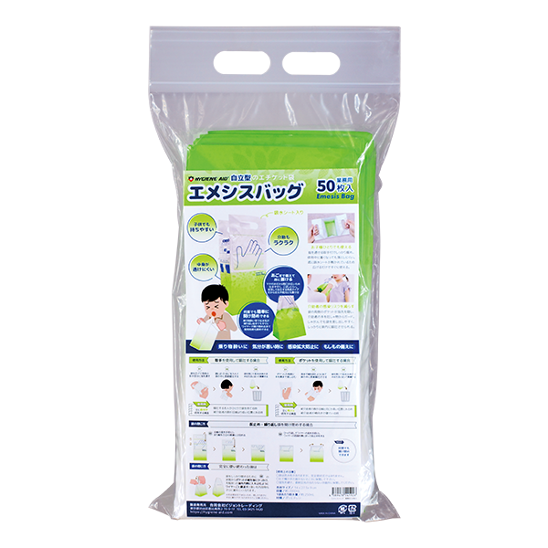 - ハイジーンエイド『エメシスバッグ』は、吸水シート入りのエチケット袋。